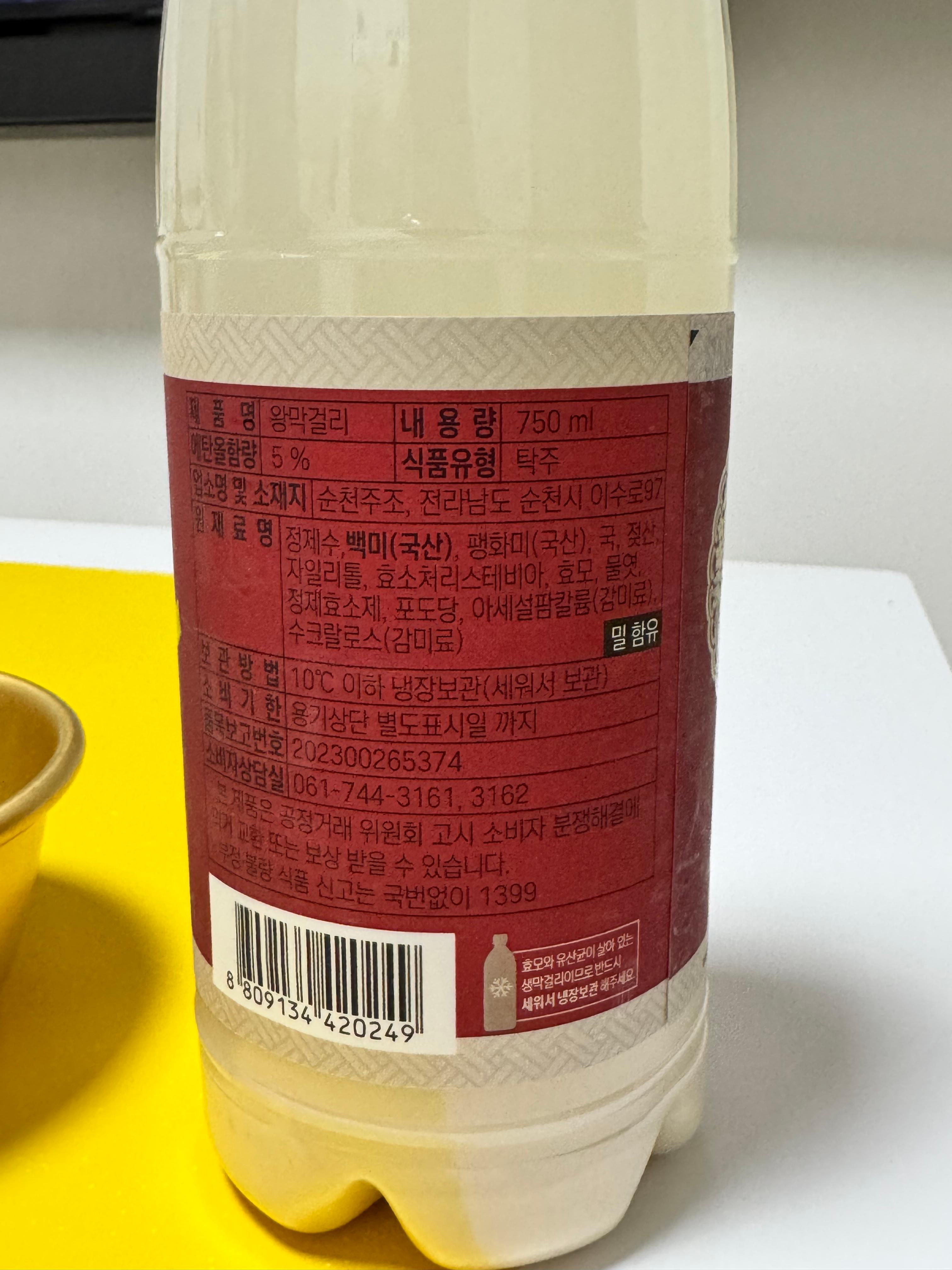 5% 도수의 막걸리답게 텁텁함이 없이 부드럽고 깔끔하게 목으로 넘어갑니다.